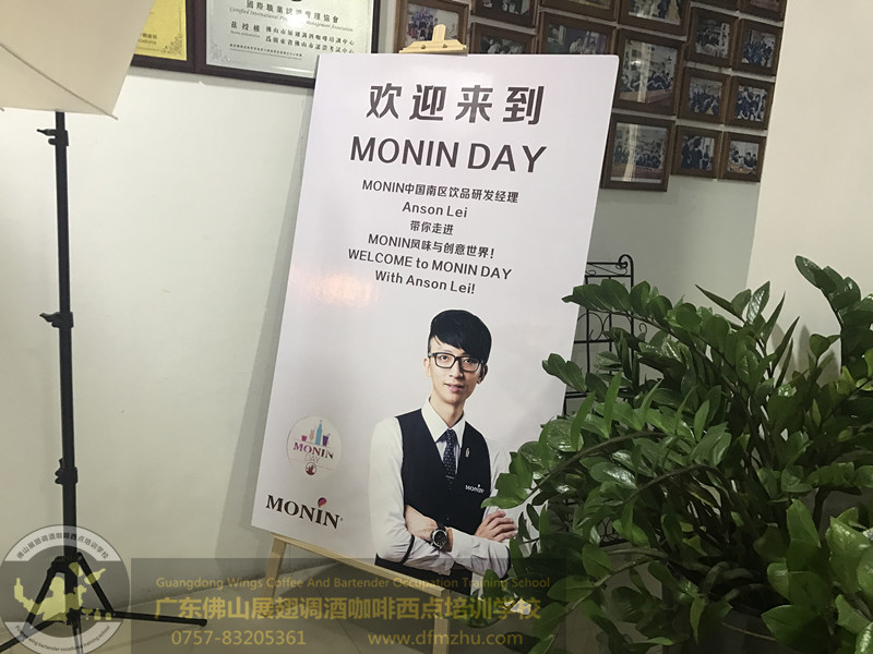 2017年9月18日,有MONIN全球飲品創意團隊成員及贊助商來到展翅調酒咖啡西點培訓學校。