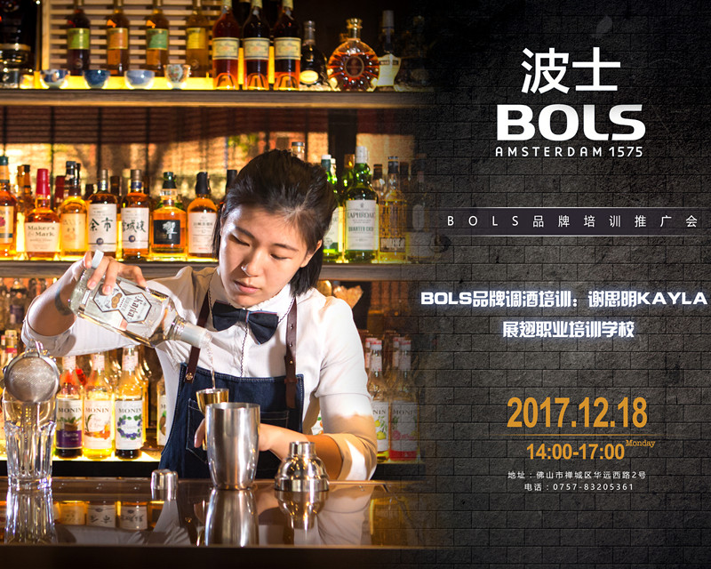 2017年12月.18日【佛山展翅調酒咖啡西點培訓學校】即將聯手BOLS品牌舉行一場不一般的新品發布會。 BOLS品牌雞尾酒推廣會。 在這次活動中, 我們特別邀請了BOLS品牌中國南區品牌大使KAYLA謝思明, 與我們分享BOLS全新風味與BOLS全新冬季雞尾酒!一起注入BOLS世界新活力,帶你走進BOLS風味與創意世界!