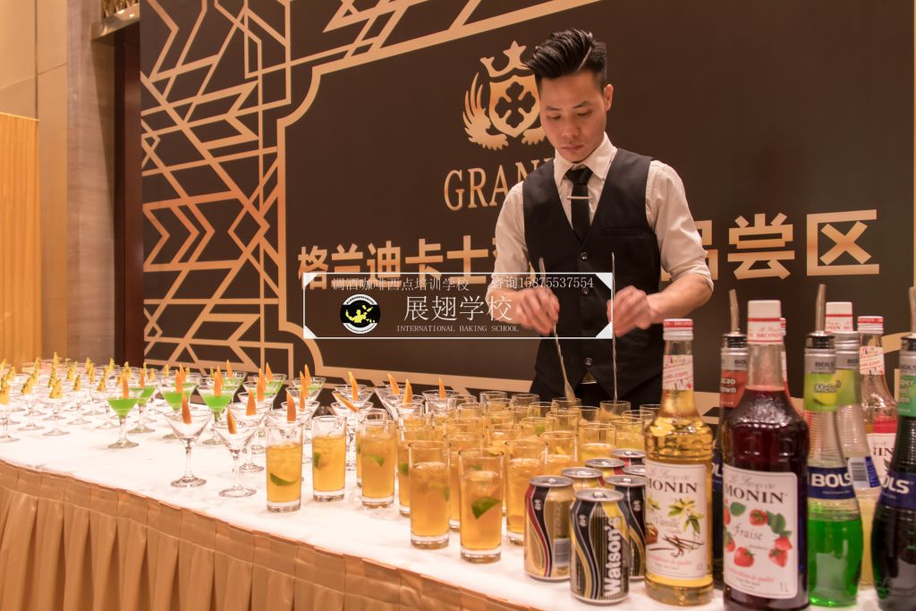 2018年3月17日,佛山展翅調酒咖啡西點培訓學校的調酒師應邀參加了法國格蘭迪卡士五周年慶典聯歡晚會,在晚會現場,我們的調酒師為晚會的來賓朋友們精心調制各種雞尾酒。本次外出實踐活動,是由我們學校的老師朱歡洪帶領新學員一起參加,這樣可以檢驗學員這段時間以來的學習成果,老師在一旁輔助指出其不足指出以便學員改進并提升自己的調酒技能。同時,也讓我們的新學員第一次真實體驗到了調酒的樂趣,看著現場每一位品嘗雞尾酒的人,才真正感覺到調酒師這個職業存在的意義和魅力所在,希望調酒班學員們能享受到其中的樂趣。