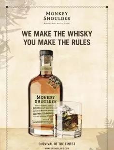 同樣采用小批量釀造,由三款來自斯佩塞地區的優質單一純麥威士忌調和而成的Monkey Shoulder,其名字靈感來源于因早期蘇格蘭工業化發展不夠發達,酒廠工人在釀造過程中需要徒手翻麥,長期的單一重復勞動很容易造成肩部肌肉勞損的這一特殊現象。 在向傳統蘇格蘭威士忌釀造工藝傳達敬意和傳承的同時,Monkey Shoulder也注重雞尾酒文化和街頭文化,不斷鼓勵創新,使其頗受業內的喜愛與推崇。試飲推車、花果山、凍檸杯、konga藥壺、Ispoon等新理念也讓威士忌變的更為有趣。