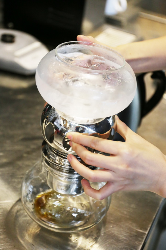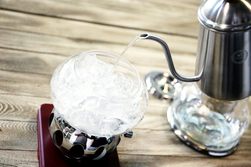3、現在氣溫高,在冰滴萃取過程中最好多留意冰壺中的冰水混合物狀態,因為在既有冰又有水的狀態下才能確保水的溫度足夠低。若發現固態冰幾乎都融化就要及時補加冰塊以保持冰水混合物的狀態。