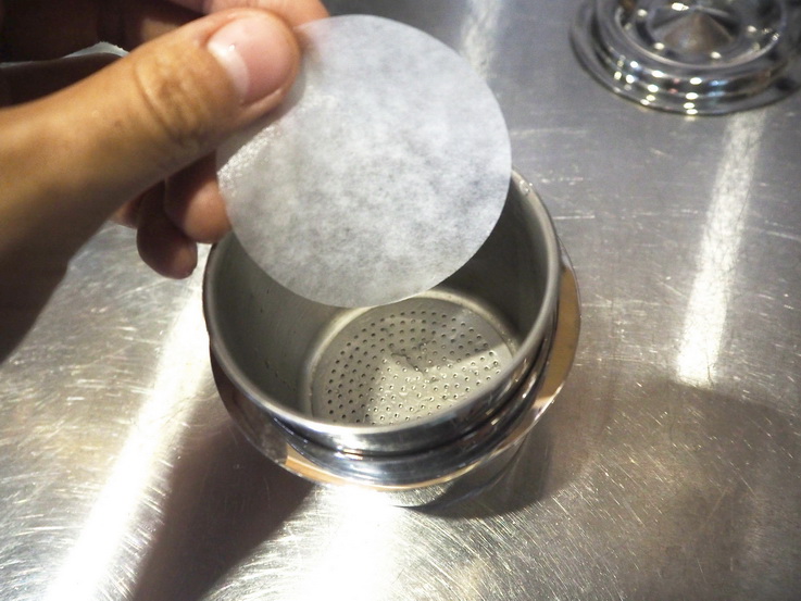 2、過濾杯蓋是一個分水的設計,有助于水滴的分流。使萃取更加平均。若擔心擺放器具的地方不平的話,可以在經預浸泡后的咖啡粉上鋪上一張經濕潤的圓形濾紙可以進一步使萃取平均。