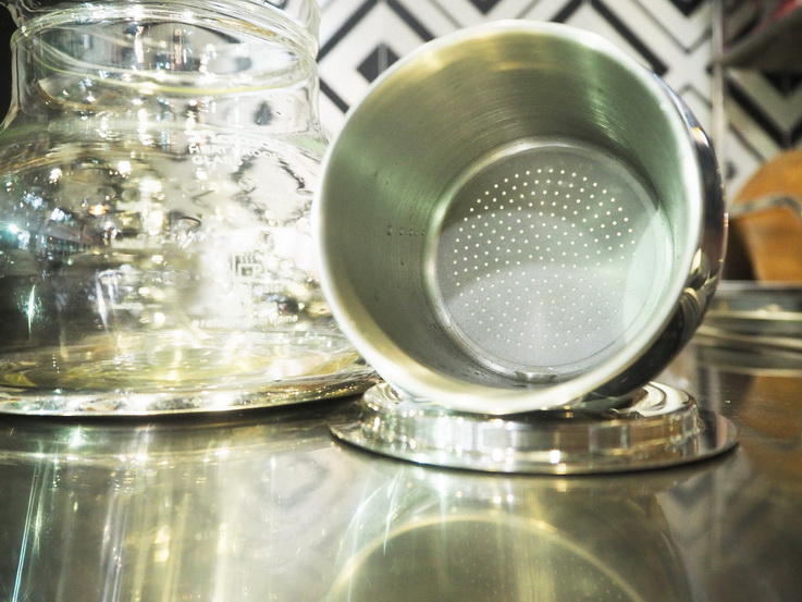 1、這款冰滴壺的過濾杯帶有過濾孔,方便濾過咖啡渣。如果對干凈度有要求的朋友可以在過濾杯底再放置一張經濕潤的圓形濾紙來提升咖啡的干凈度。
